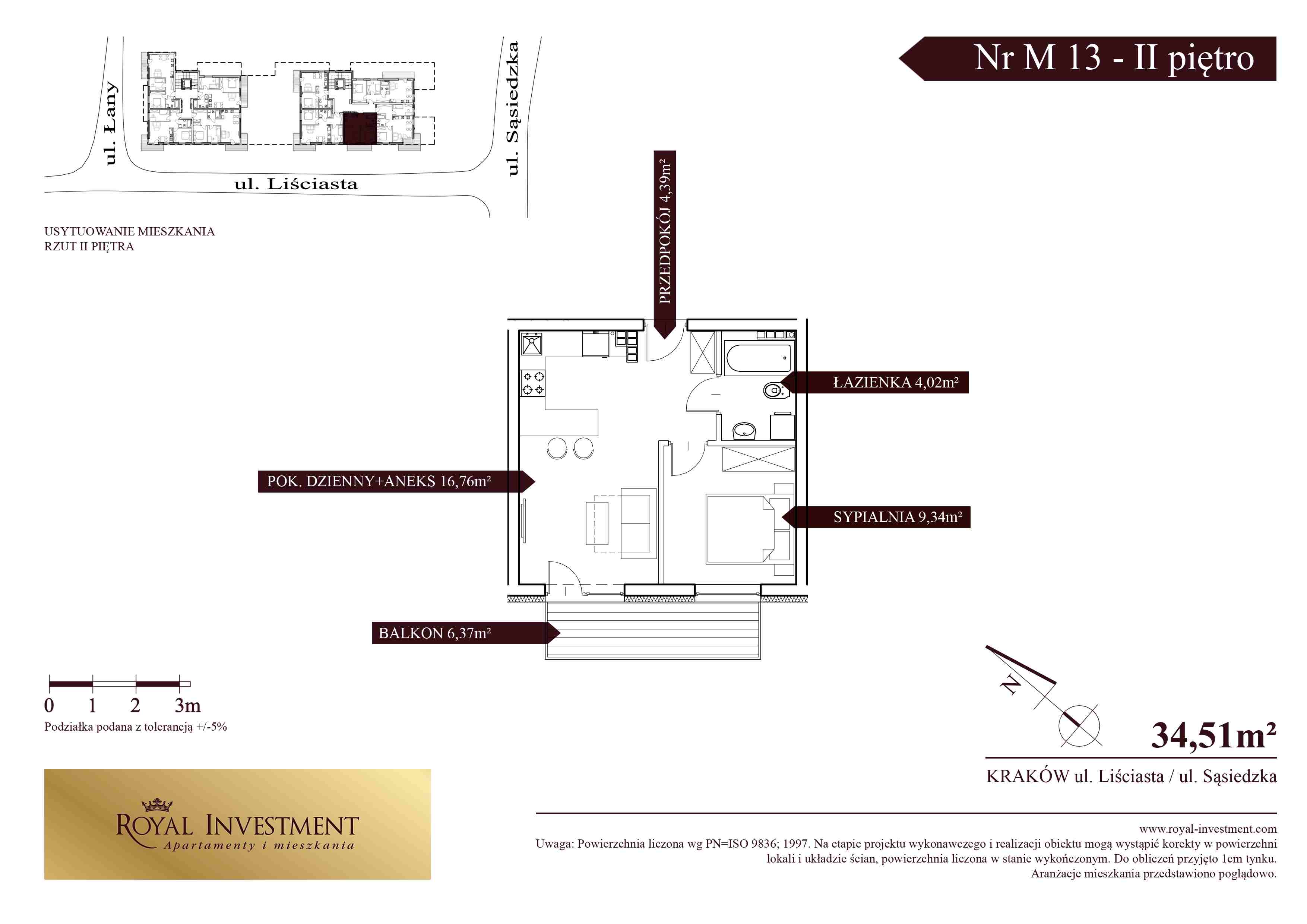 | II piętro | M13 | 2 | 34.51m2 | Balkon | sprzedane | |